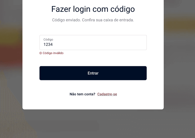 Error states now use red typography and exclamation mark icons to clearly communicate when something has gone wrong. Error messages are specific to the authentication method in use, eliminating the misleading "invalid email/password" copy for the passcode flow.